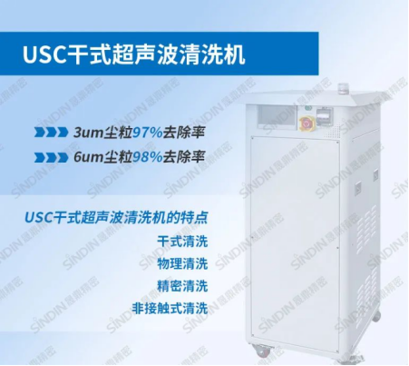 将粘尘棒替换成USC超声波除尘,除尘头和产品表面进行无接触式除尘,通过超声波传播的能量及震动来达到除尘的目的。