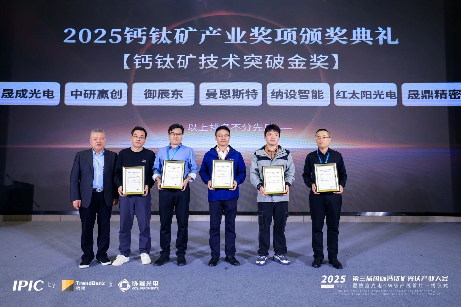 晟鼎受邀参加并获大会颁发的“钙钛矿装备技术贡献奖”,以表彰其在钙钛矿清洗、涂布、蒸镀、激光刻划等关键设备研发或国产化替代中发挥的重要作用。