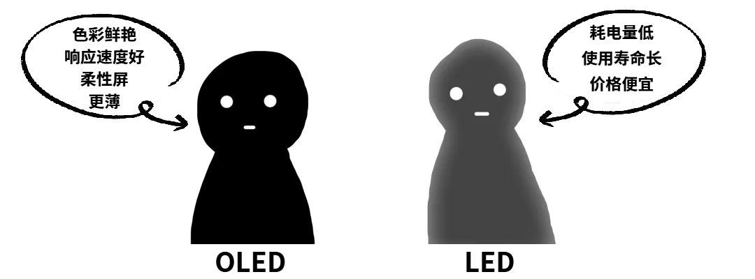 LED封装尺寸偏大,不能应用到高DPI显示场景。色彩的饱和度和对比度没有OLED细腻。同时LED没办法像OLED那么轻薄、可弯曲且折叠。
