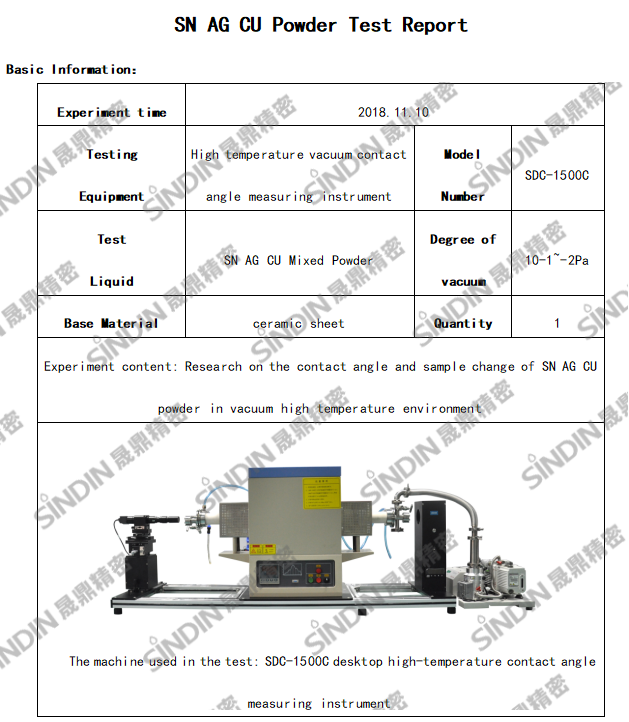 SN AG CU powder contact angle test experimental report