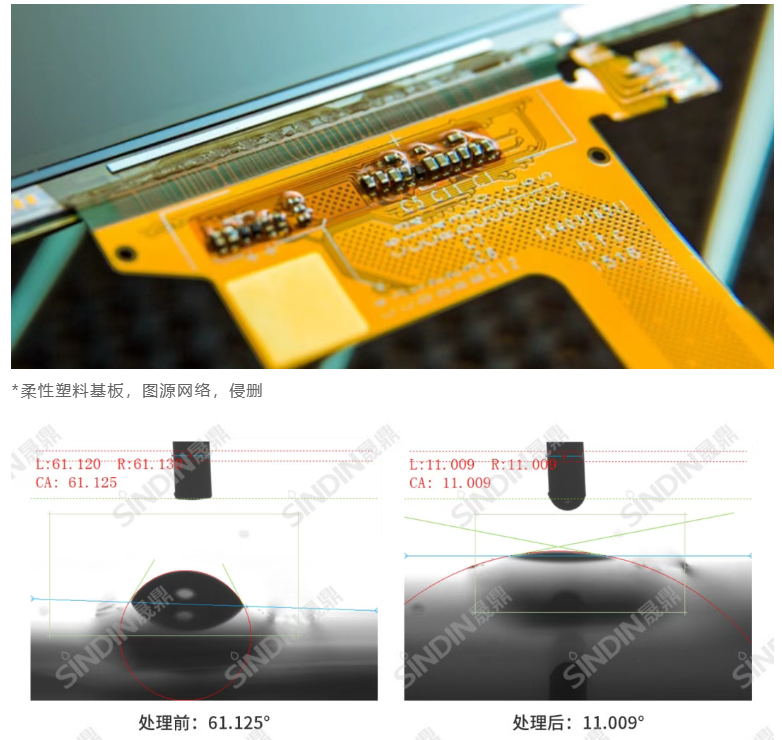 柔性塑料基板表面能低、化学惰性强,导致胶粘剂难以有效润湿和铺展,如果未经表面预处理直接贴合,